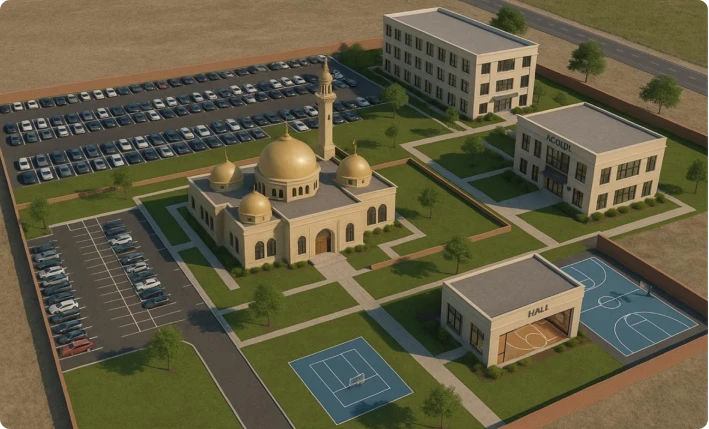 ICOSAC envisions a comprehensive campus that transcends a single building. Over the next decade, we are developing a vibrant, inclusive, and spiritually enriching hub that fosters religious growth, lifelong learning, ethical leadership, and compassionate service to both Muslim and broader communities.